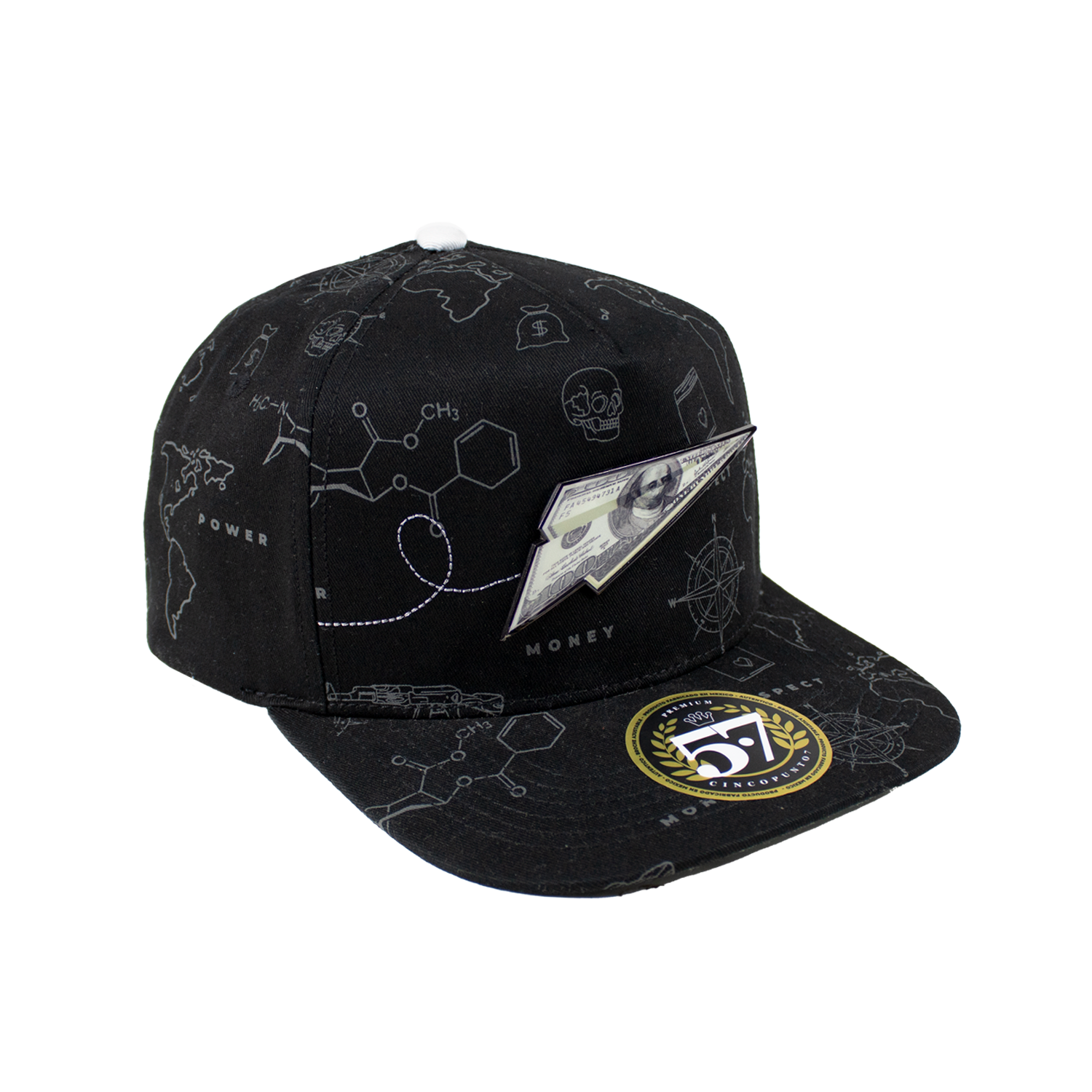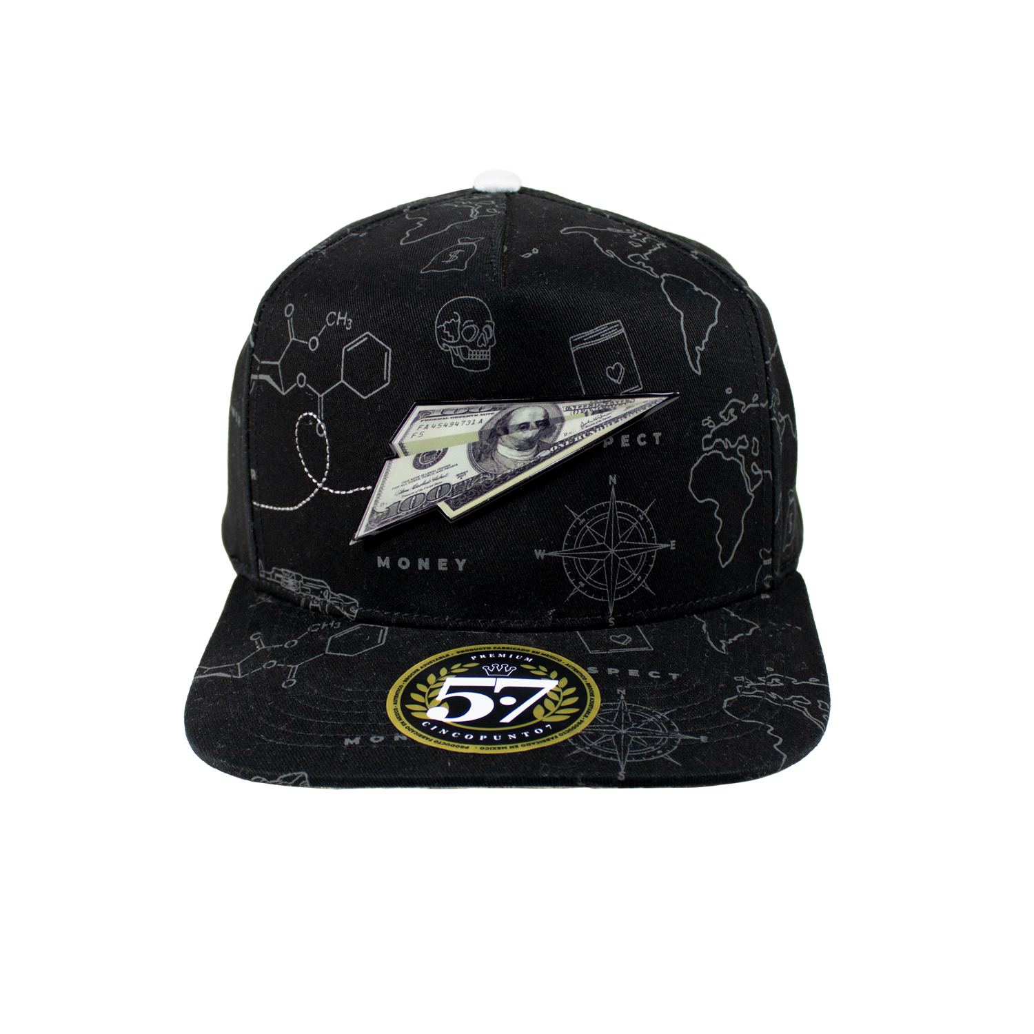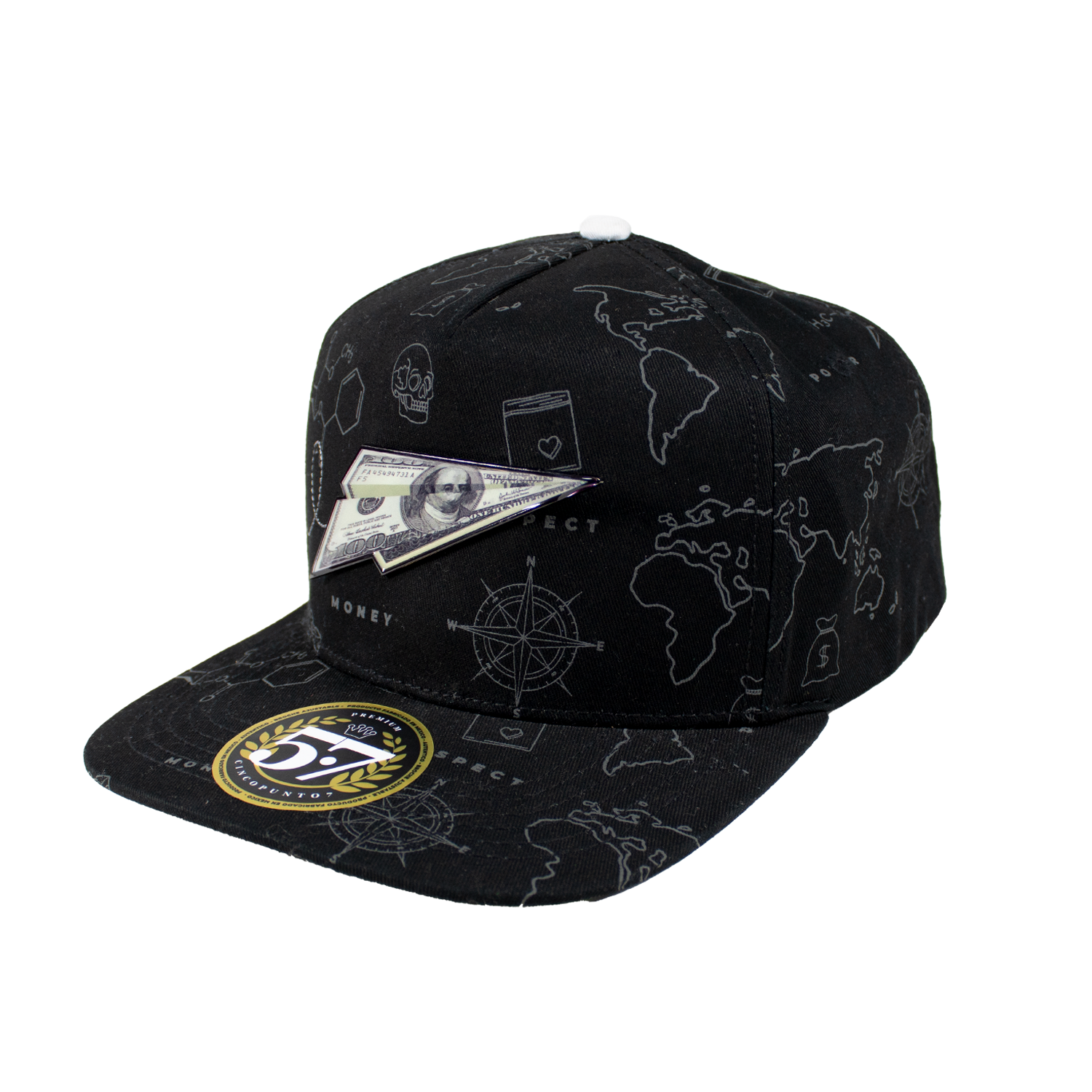 La gorra presenta un diseño clásico de cinco paneles, con una estructura que se adapta perfectamente a la forma de tu cabeza. La parte delantera está adornada con una placa metálica distintiva, que aporta un toque de elegancia y exclusividad.