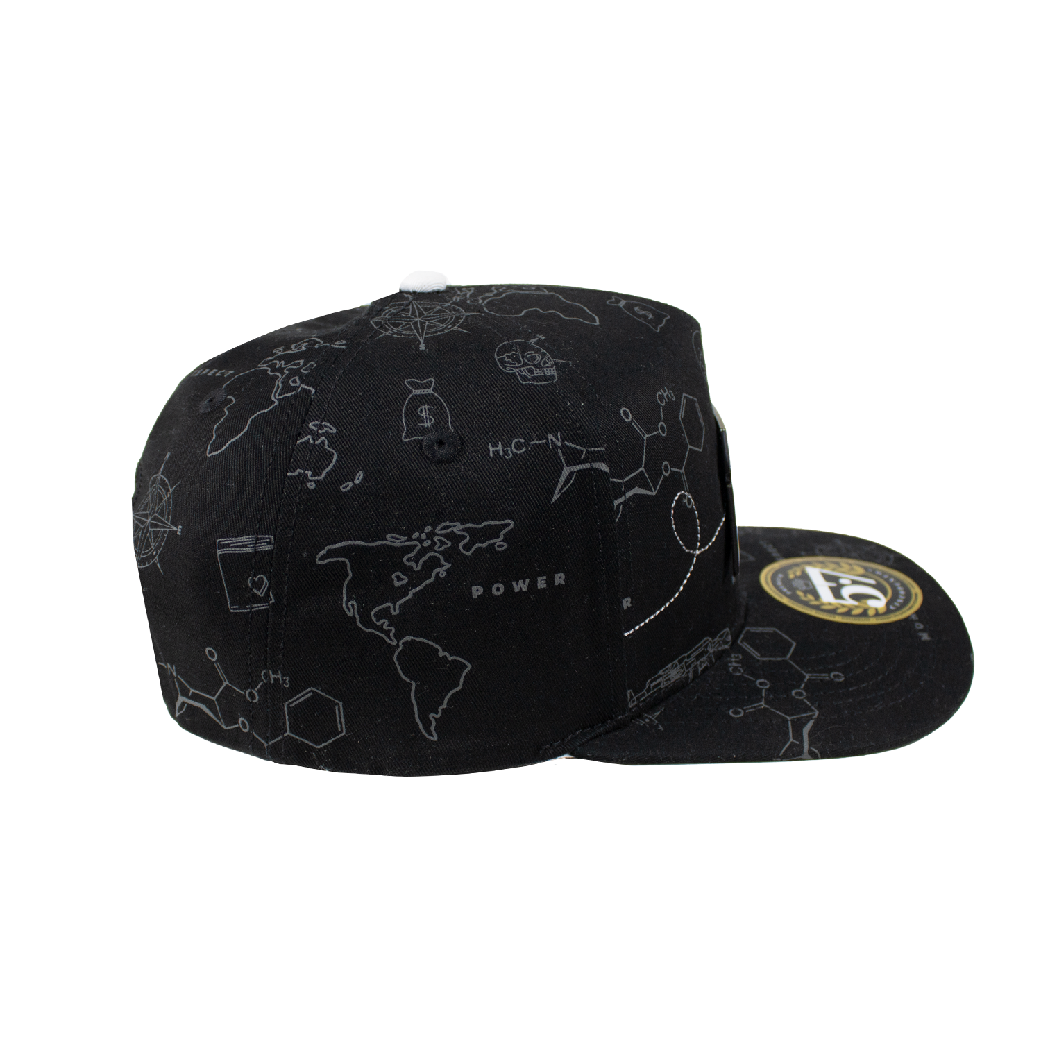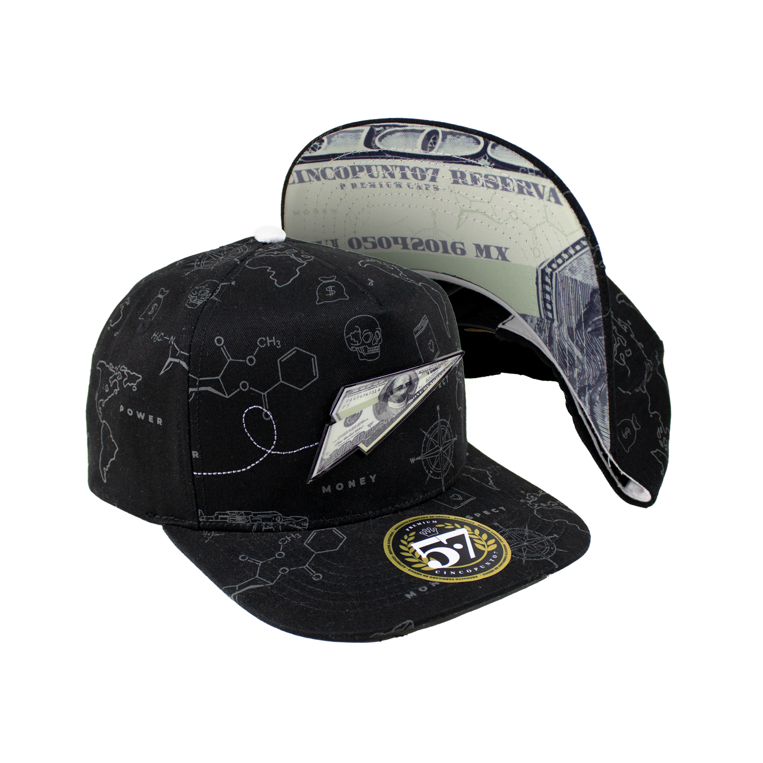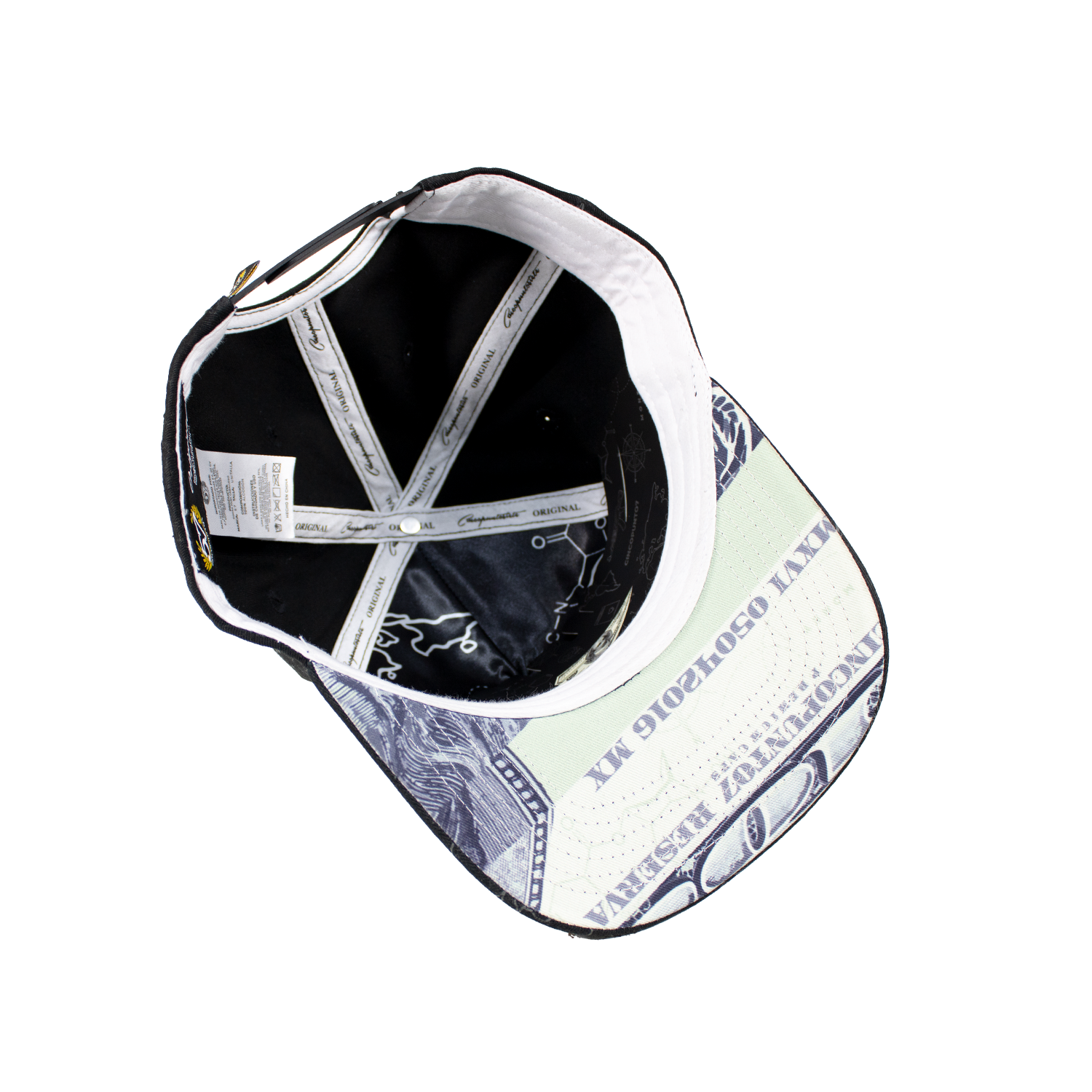 La gorra presenta un diseño clásico de cinco paneles, con una estructura que se adapta perfectamente a la forma de tu cabeza. La parte delantera está adornada con una placa metálica distintiva, que aporta un toque de elegancia y exclusividad.