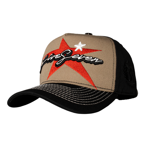 El contraste define su carácter: beige al frente, negro en los laterales, unidos por bordados precisos que cuentan identidad y herencia. El emblema se impone con firmeza, mientras la visera oscura equilibra el conjunto con sobriedad.