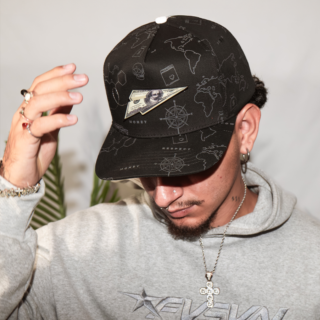 Paper Plane Full Print Black Curva | Premium | Snapback / Curva | Black